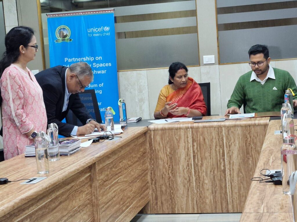 Bhubaneswar, January 21, 2026—The Bhubaneswar Municipal Corporation (BMC) and UNICEF Odisha signed a Memorandum of Understanding (MoU) today at the BMC Office to transform the city’s urban landscape into safer, greener, and more child-friendly spaces.