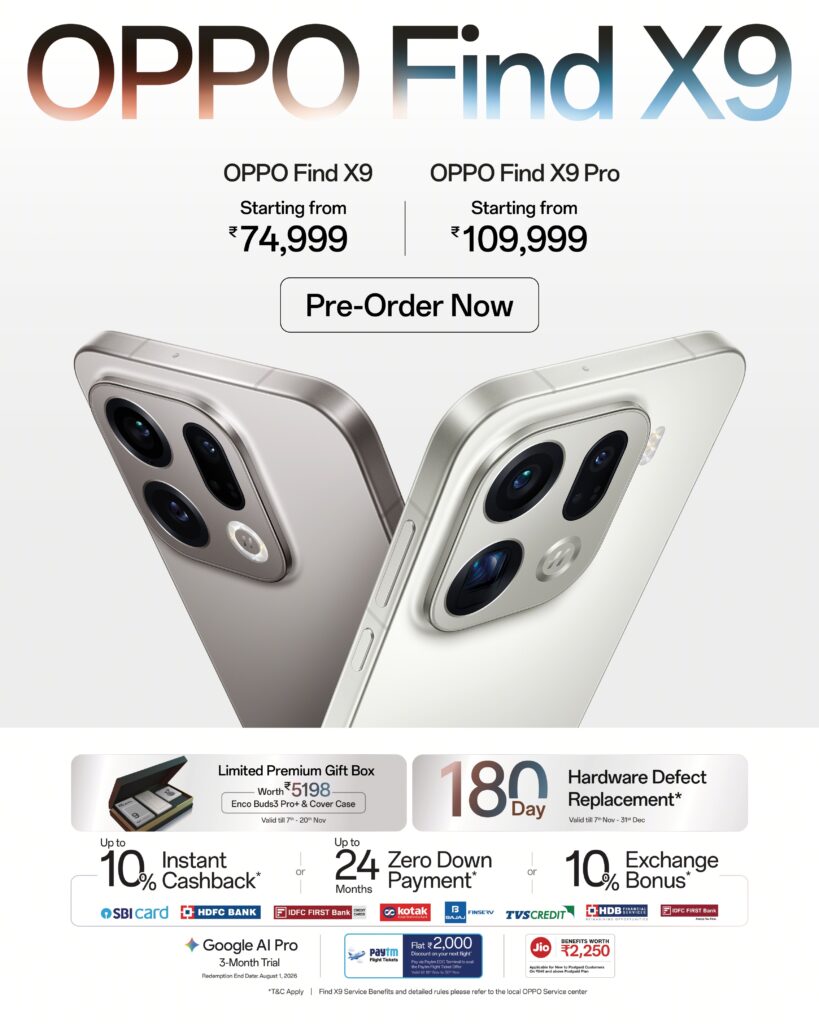 “With the Find X9 Series, OPPO continues to redefine what users can expect from a flagship smartphone,” said Peter Dohyung Lee, Head of Product Strategy, OPPO. “India has seen a resurgence in the adoption of premium smartphones by consumers in the last few quarters. We are glad to bring in this new chapter in OPPO’s journey of providing premium smartphone experience to the customers of India, by virtue of this strongest flagship ever.  We are confident with our industry first innovations, Find X9 Series would redefine customer experience and put OPPO at the helm of providing user rich experiences with best value proposition.”